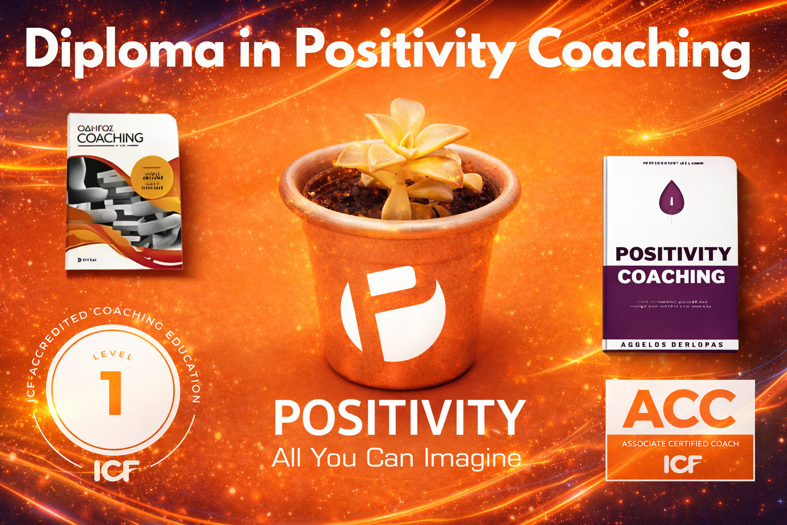 Το Diploma in Positivity Coaching είναι το ιδανικό σημείο εκκίνησης. Σχεδιασμένο για να σε εξοπλίσει με τις δεξιότητες και τις γνώσεις που χρειάζονται για να οδηγείς άτομα προς την προσωπική και επαγγελματική τους ανάπτυξη, αυτό το πρόγραμμα είναι πιστοποιημένο από τη Διεθνή Ομοσπονδία Coaching (ICF) ως πρόγραμμα Επιπέδου 1.