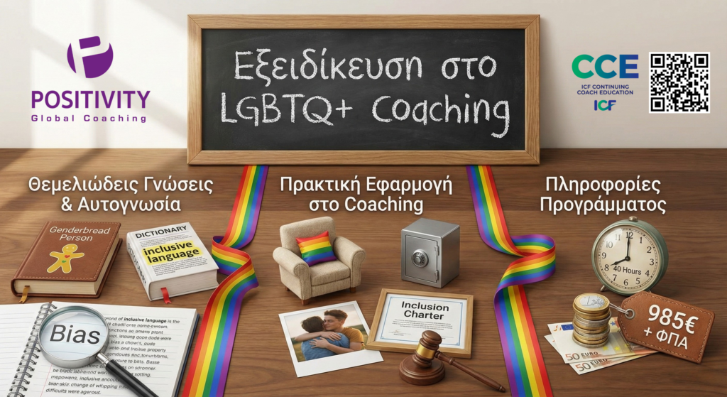 Team Coaching, LGBTQ+ Coaching, Spirituality, Transactional Analysis, Trauma-Informed Coaching ή Advanced Positivity.