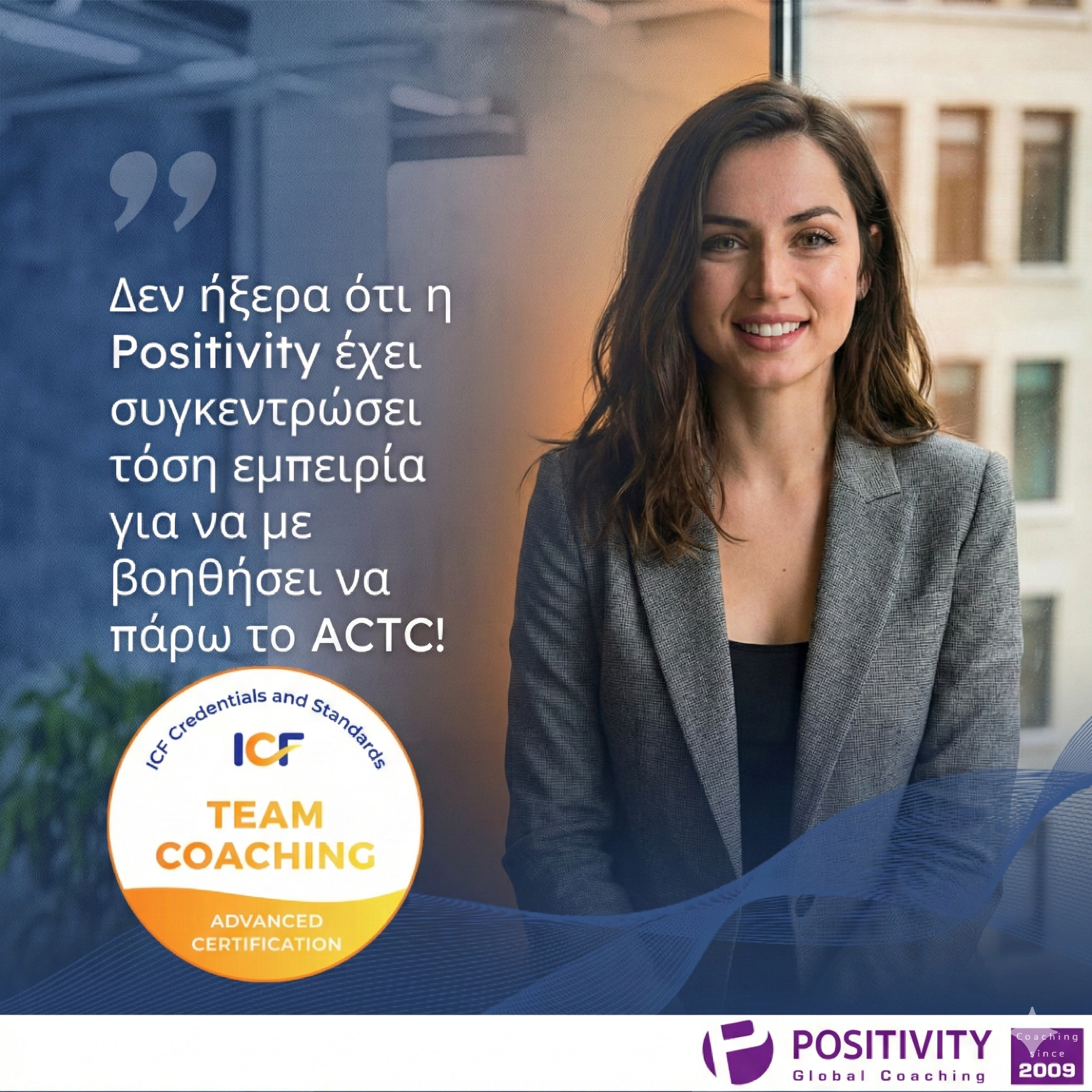 Έλα στην εμπειρία της Positivity: H ΜΟΝΗ Ελληνική σχολή με Δ/ντή ICF MCC και EMCC EIA-MP και ESIA.