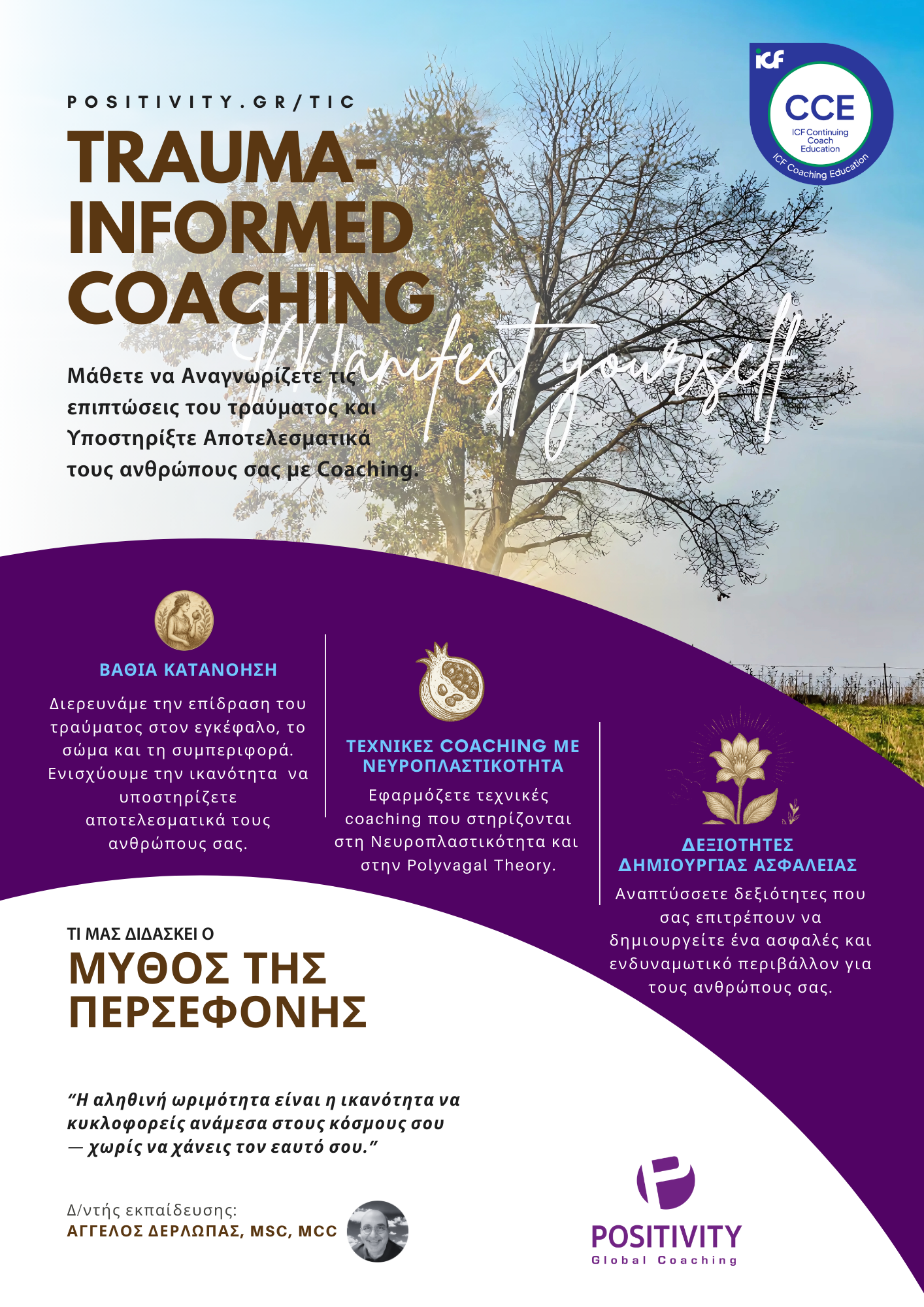 Το 𝗧𝗿𝗮𝘂𝗺𝗮-𝗜𝗻𝗳𝗼𝗿𝗺𝗲𝗱 𝗖𝗼𝗮𝗰𝗵𝗶𝗻𝗴 έχει πιστοποιηθεί από τον ICF ως CCE. 🎉